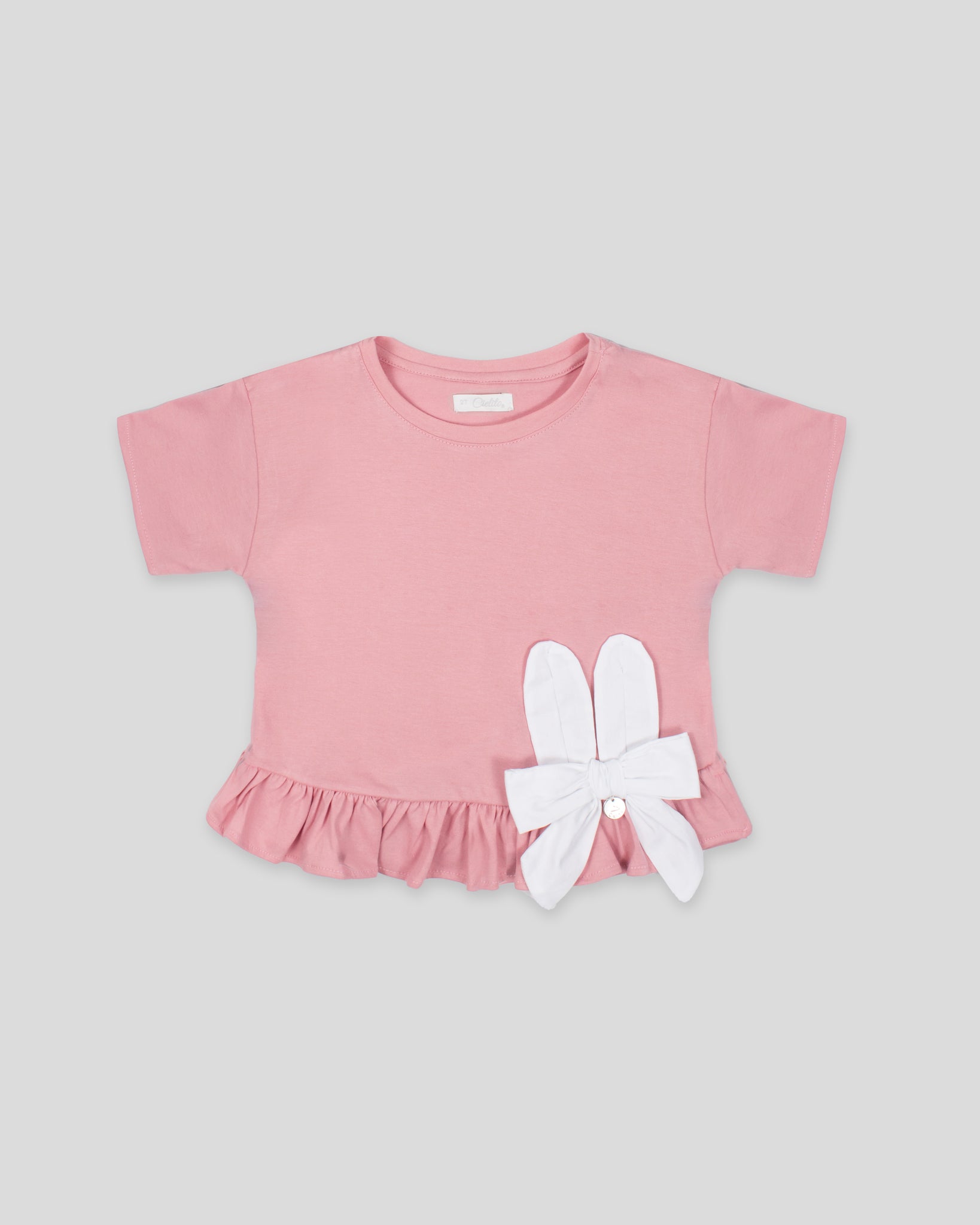 Es suave, fresca y delicada, perfecta para esos días en los que quiero que mi hija esté cómoda pero se vea especial. El color rosado es precioso y el detalle del conejito con el lazo blanco le da ese toque tierno que hace que no pase desapercibida.