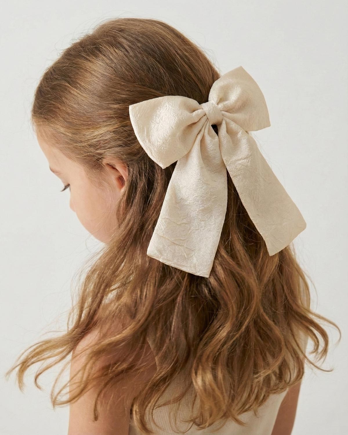 Este moño pinza en amarillo crema ilumina el look de tu niña con sutileza y encanto. Perfecto para acompañar cada momento especial. 💛