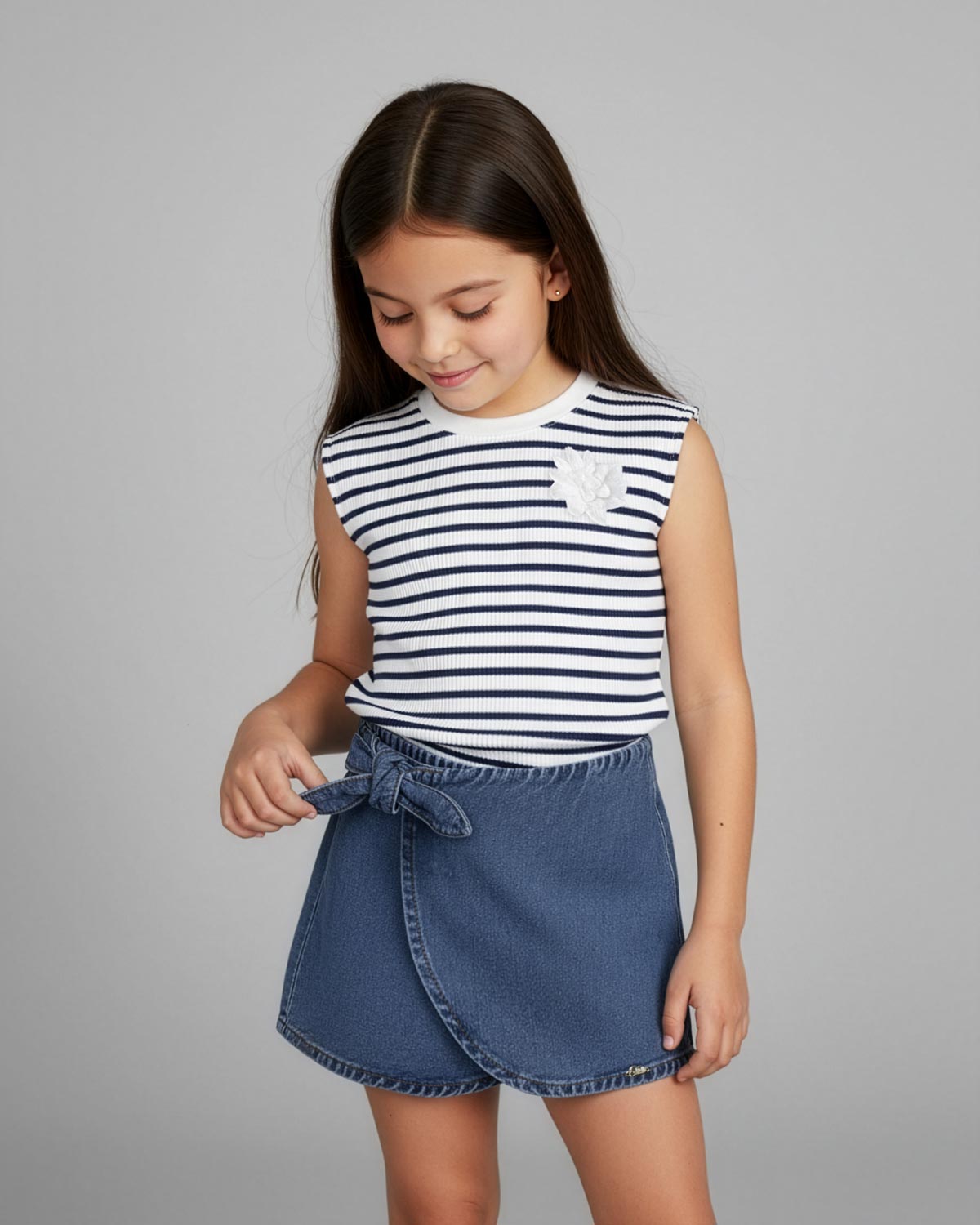 Con su diseño cruzado con moño y el short interno, asegurando libertad de movimiento para que tu niña juegue y se divierta sin preocupaciones. ¡Hazla parte de sus looks favoritos!