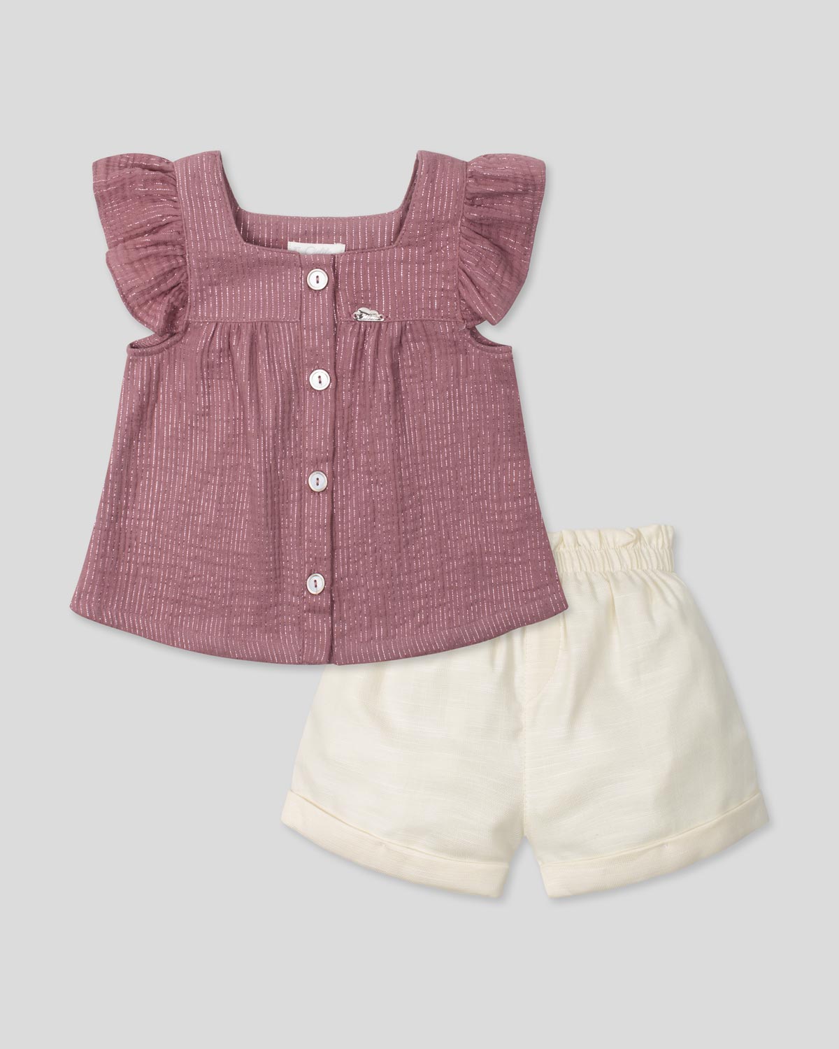 Este dulce conjunto para niña combina una blusa palo de rosa oscuro con botones delicados y un short crema suave, perfecto para brindar comodidad y estilo en cualquier ocasión. Un conjunto que siempre se siente bien para toda ocasión. 💕